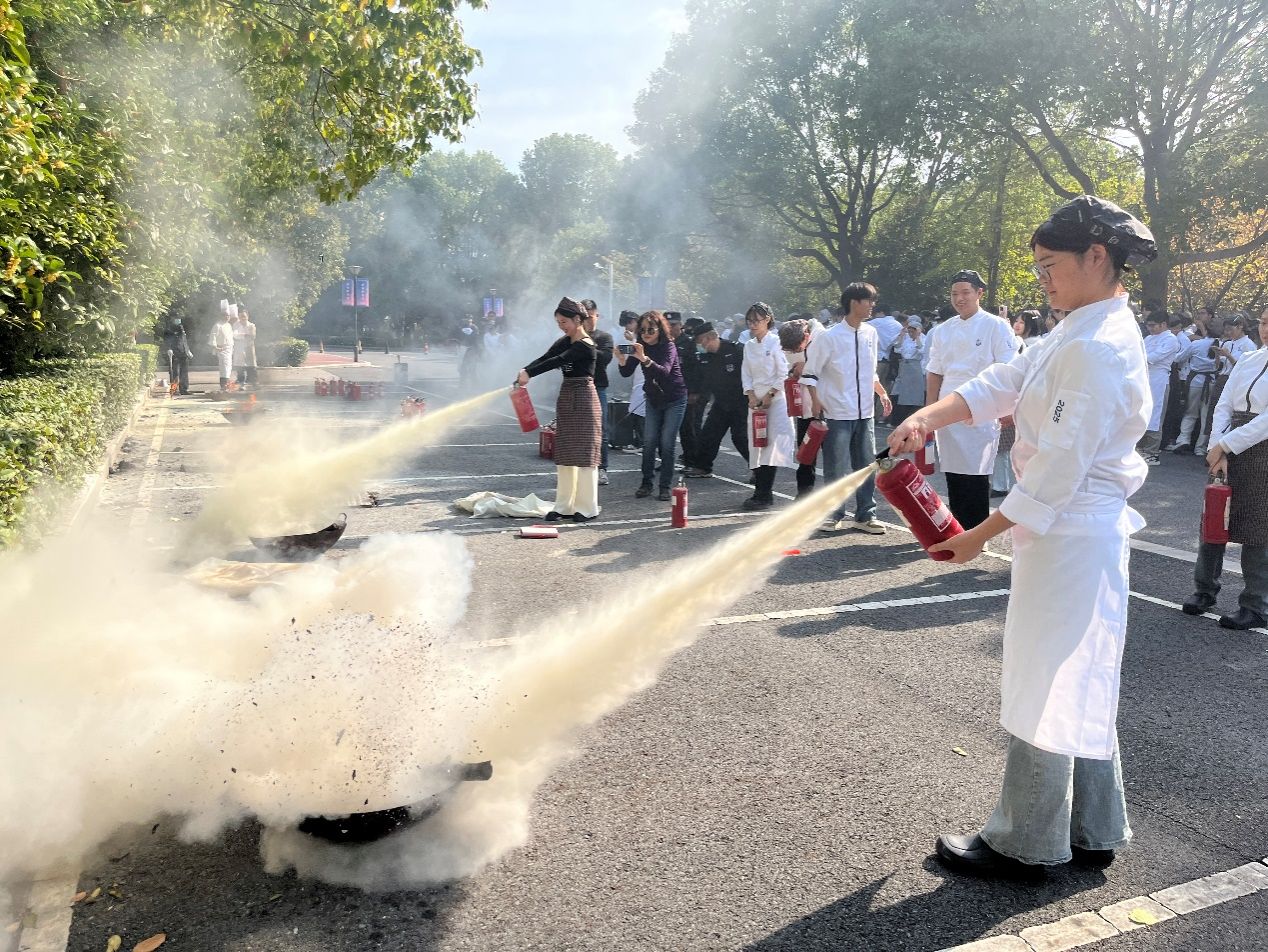 为压实校园安全责任,提升师生应对火灾的实战能力,10月29日,安全保卫处以党日活动为抓手,联合烹饪与营养学院共同开展疏散逃生暨消防灭火演练, 600余名师生全程参与。