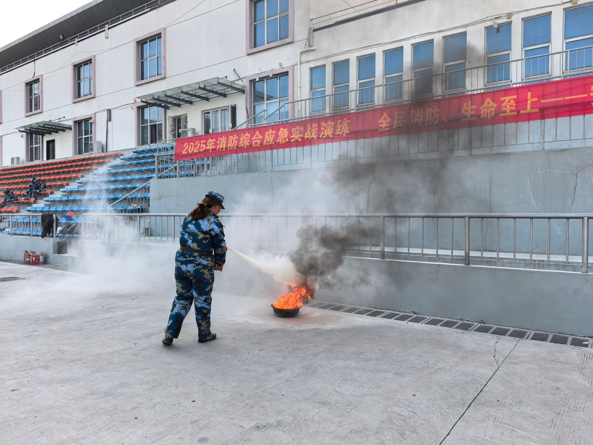 活动的最后环节是消防灭火比赛,将整场活动推向了高潮。参赛师生在预设安全区域,轮流操作干粉灭火器,对模拟火源进行扑救。他们按照“提、拔、握、压”的使用口诀,从判断风向、拔除保险销,到规范握管、精准喷射火焰根部,每个步骤都力求规范标准。比赛不仅检验了师生对灭火器使用这一关键技能的掌握程度,也培养了他们在火灾初起时的“救早、灭小”实战能力。这种以赛促学的方式,既巩固了培训内容,又增强了师生扑救初起火灾的信心与能力。