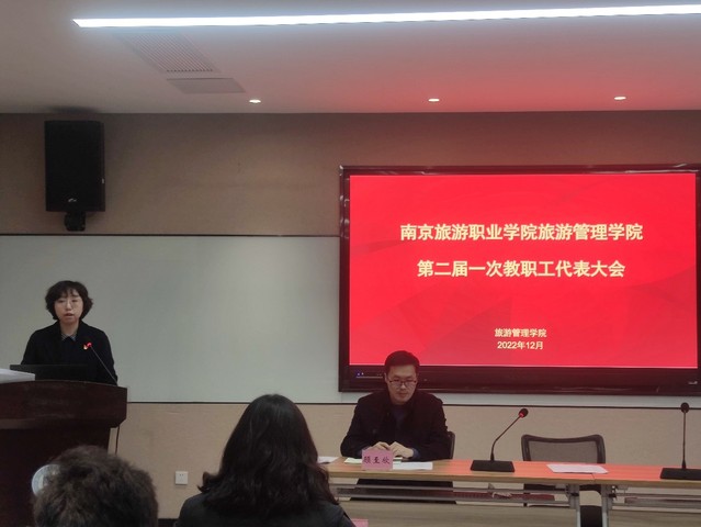 为进一步深化二级管理,促进学院高质量发展。2022年12月9日下午,旅游管理学院在行政楼111会议室举行了第二届教职工代表大会第一次会议,南京旅游职业学院副院长操阳,南京旅游职业学院工会副主席戚君子,旅游管理学院党政班子及全体教代会代表列席了此次会议。会议由分工会主席姜雯雯主持,