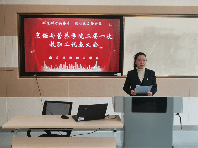 会上,烹饪与营养学院副院长王艳玲宣读了本次烹饪与营养学院第二届一次教职工代表大会决议