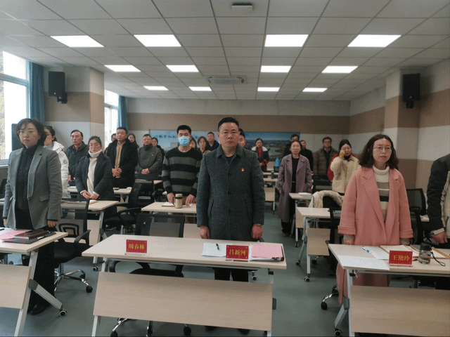 下午14点会议在雄壮的国歌声中开幕。南京旅游职业学院工会主席戚君子为大会宣读工会贺信。