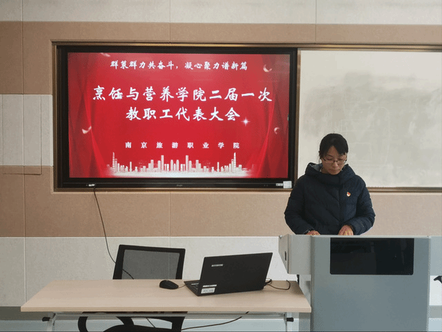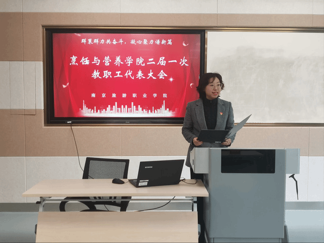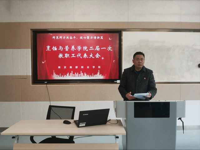 为进一步落实教职工参与学院民主管理,落实“三重一大”决策制度,充分发挥教代会在促进学院发展中的作用,不断提升学院民主管理的水平,2022年11月30日下午烹饪与营养学院学院于教师发展中心会议室召开二届一次教职工代表大会。南京旅游职业学院院工会戚君子、烹饪与营养学院院长吕新河党总支副书记徐金华、副院长王艳玲出席,烹饪与营养学院学院全体教职工参加会议,会议吕慧主持