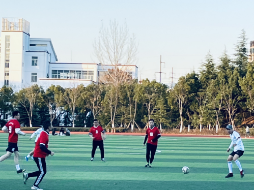 经过中场的休整双方都对阵容做了调整,进行了战术布置并交换了场地,老师组经过严防死守,最终未让学生组进球,经过30分钟的激烈角逐,下半场握手言和,最终以1:0结束了今天的这场师生对抗赛。