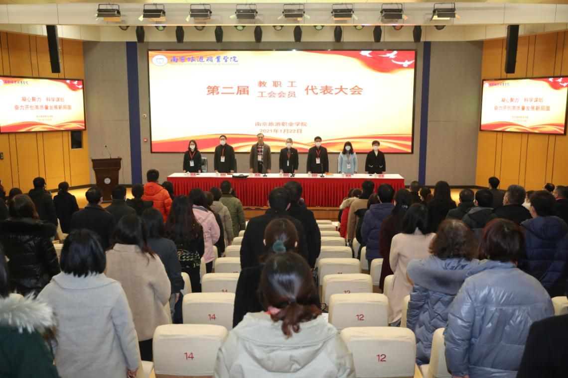1月22日,学院第二届教职工代表大会暨工会会员代表大会在图书馆报告厅隆重举行。江苏省文旅厅工会主席杨敬久、100余名代表、学院各部门的负责人,部分民主党派和高级职称教师代表以及特邀代表列席会议。大会由院党委副书记、副院长、大会执行主席黄斌主持。
