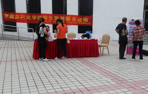 9月12日,在学院工会和旅游管理学院的共同努力下,我院与江苏省舜天海外旅游有限公司联合举办了针对我院师生的旅游服务咨询活动。这一天是来自全国各地2000多名新生报到的日子,也是旅行社旅游服务咨询活动首次走进我校校园。江苏舜天海外工作人员上午早早地在体育馆和图书馆门口搭起旅游服务咨询台,成为新生报到日的一隅亮丽风景线。参与服务的10名工作人员中有5名是我院毕业生,为期一天的旅游服务咨询活动给师生留下了深刻的印象,也提供了切实的旅游咨询服务。