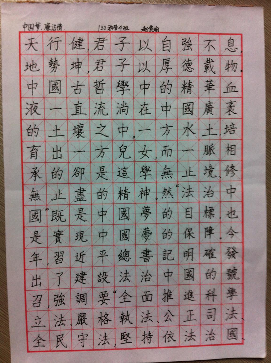 硬笔书法二等奖 赵紫瑜 133酒店管理4班