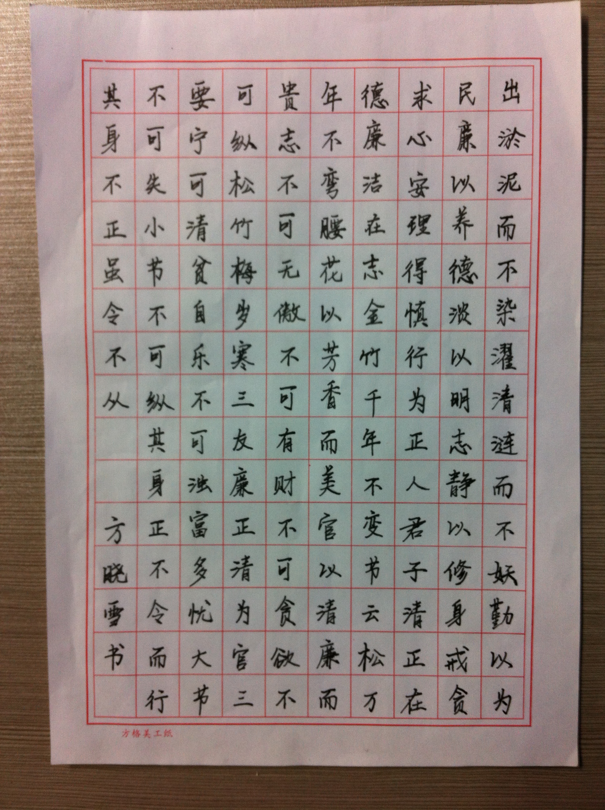 硬笔书法一等奖 方晓雪 133旅游英语2班