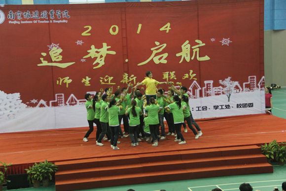 岁月更迭,万物在瑟瑟寒冬后悄然复苏;光阴渲染,音符在缤纷花雨里缀成乐章。2013年12月25日下午,由我院工会、学生工作部(处)、团委主办的“追梦•启航” 2014师生迎新大联欢活动在体育馆隆重举行。