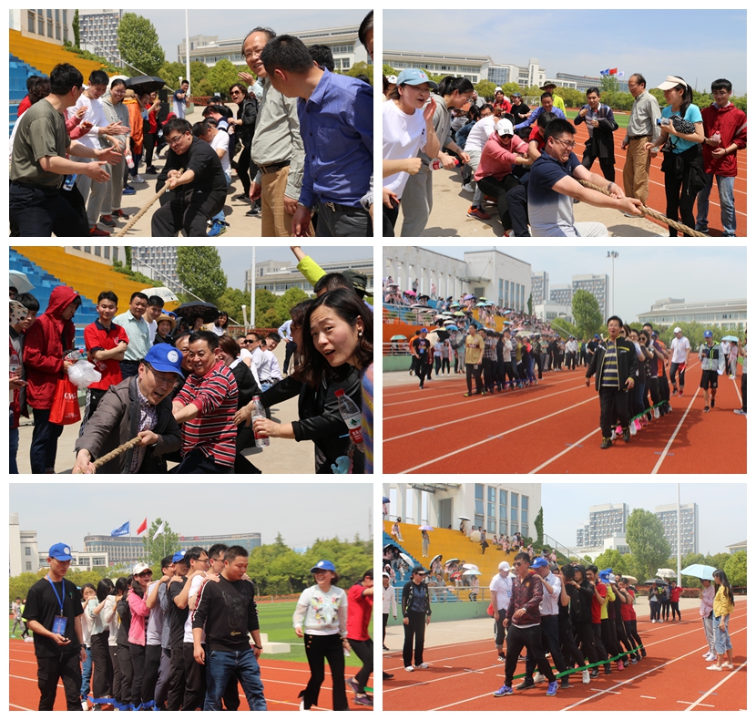 此次教工运动会将体育与娱乐、趣味相结合,既有传统的竞技项目,又有娱乐性、科技性较强的新项目,共设定六个大项的比赛,有拔河、点球大赛、有轨电车、托兵兵球、4*100米接力和10*50米迎面接力。比赛过程中到处都是教职工矫健的身影和欢乐的笑声。