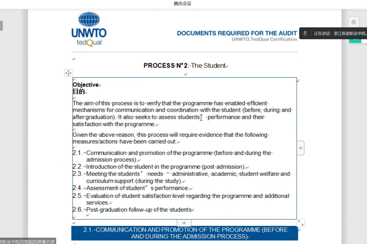 经过此次线上会议,本年度参与认证的各专业对世界旅游组织(UNWTO)教育质量认证支撑材料的修改与润色有了更为清楚的认识,为夯实各专业支撑材料准备工作提供了有力的帮助。