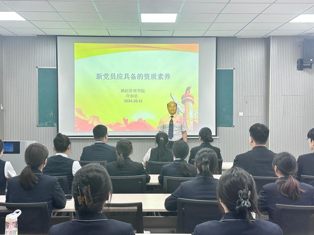 为进一步加强对入党积极分子的培养和考察,提高入党积极分子的政治素养和理论修养,2024年10月11日,酒店管理学院党总支特邀请关工委退休教师许如忠在1104教室开展了一场题为“坚定思想理念,强化身份意识”的专题党课。25名入党积极分子以饱满的热情参与了此次党课的学习。