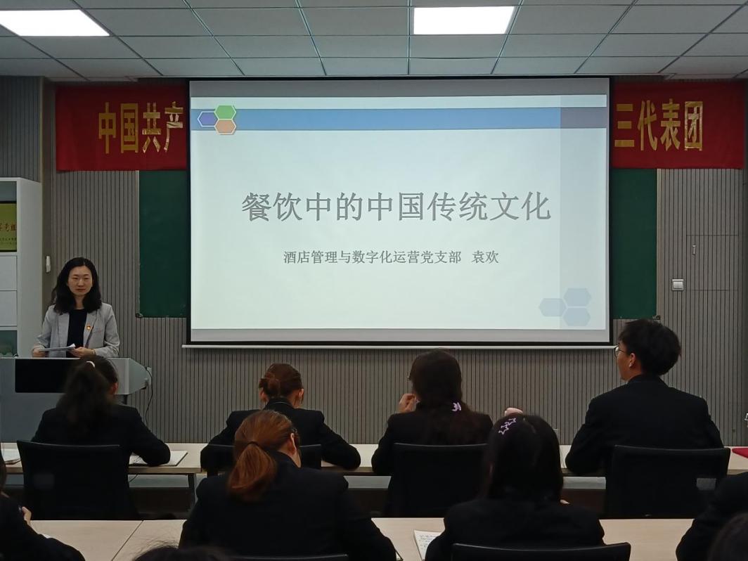 2023年10月17日,酒店管理学院酒店管理与数字化运营党支部副书记袁欢为2023年秋季全体入党积极分子上了一堂主题为“餐饮中的中国传统文化”的党课,19名入党积极分子以饱满的热情和积极的态度顺利完成了第九次党课学习。