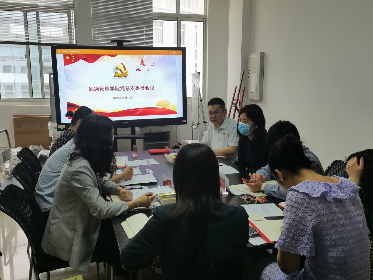 酒店管理学院党总支于2023年5月17日上午9:00点在教学楼1号楼J1312开展了理论学习中心组(扩大)学习会。酒店管理学院党总支全体成员参加了会议,会议由学院党总支书记马卫主持。