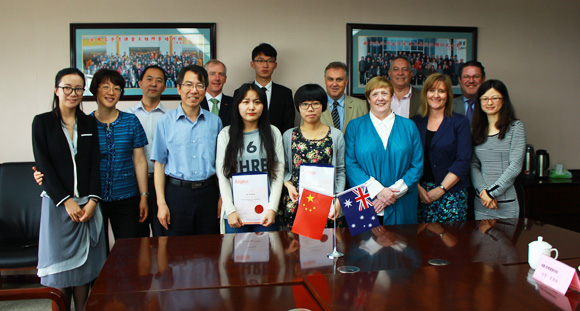 澳方Nick Hunt先生和Anne Astin女士为2015届中澳班毕业生代表颁发了澳方毕业证书并合影留念,并寄语同学们:希望大家充分利用在校期间所学所得,勇往直前,不断进步。