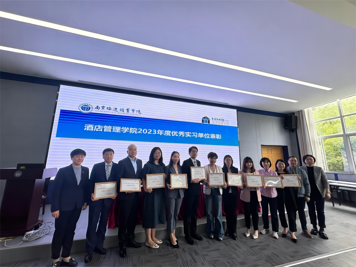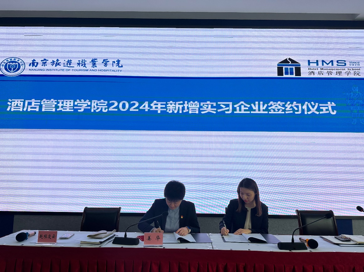 接着,戚君子宣读了酒店管理学院2023年优秀实习单位表彰名单,与会领导为十家实习企业代表进行了现场颁奖。同时,姜华与2024年新增实习企业代表进行了签约仪式。
