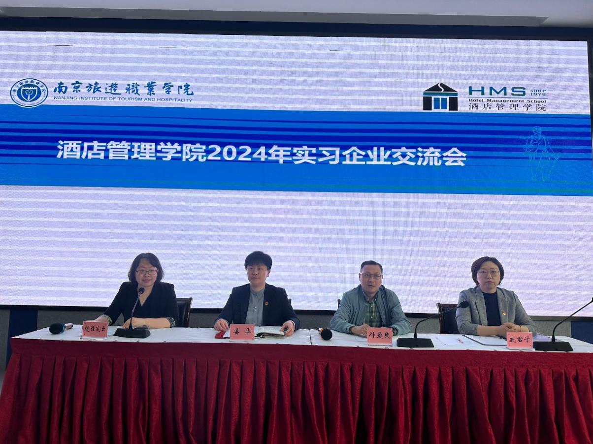 为加强毕业实习管理,提高专业人才培养质量,5月11日中午,酒店管理学院在教学楼报告厅召开了2024年实习企业交流会。南京旅游职业学院教务处处长孙爱民、酒店管理学院副院长姜华、党总支副书记戚君子以及来自63家实习企业的代表参加了座谈,会议由实习专员赵程凌云主持。