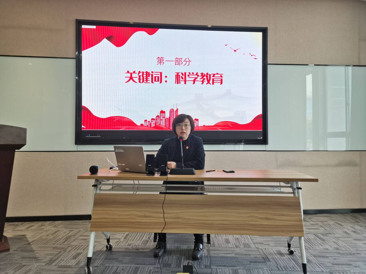 戚君子以《2024全国两会教育热点面面观》为题,紧紧围绕2024年全国两会中提到社会教育热点问题,从五个关键词——“科学教育”、“心理健康”、“数字化培养”、“人才培养”和“高职办本科专业”展开领学,指出教育在社会发展、国家强大等方面占有重要地位,作为教育工作者要时刻以习近平总书记重要讲话为指引,以两会热点问题为启发,积极投身教育强国实践,为全面推进中华民族伟大复兴提供有力支撑。