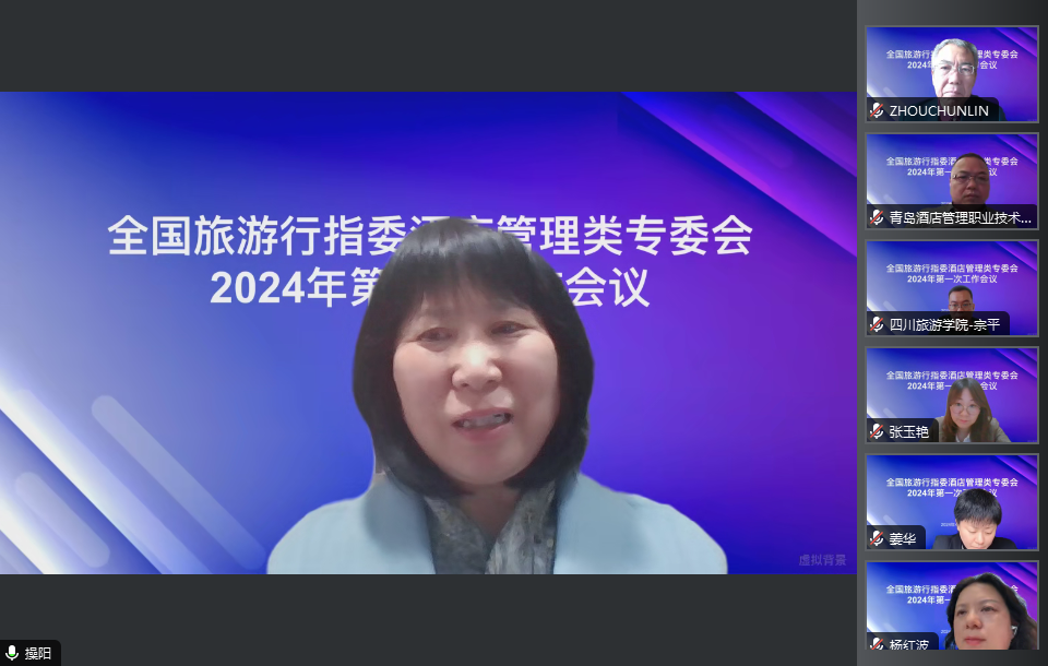 2024年4月13日下午,全国旅游行指委酒店管理类专委会2024年第一次工作会议以线上会议的形式顺利召开。全国旅游行指委酒店管理类专委会主任、南京旅游职业学院党委副书记、院长操阳、全国旅游行指委副主任周春林以及酒店管理类专委会各位委员出席了会议。会议由酒店管理类专委会办公室主任、南京旅游职业学院酒店管理学院院长苏炜主持。