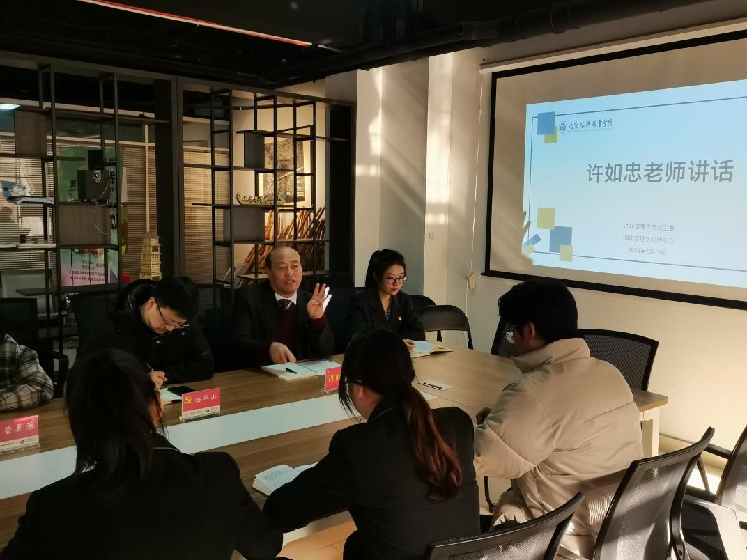 酒店管理学院学生会坚持全心全意服务同学的宗旨,发挥了联系广大师生的桥梁和纽带作用,勤勤恳恳做工作,踏踏实实做服务,充分彰显出当代青年大学生责任担当、吃苦奉献、团结向上的精神品质。12月6日,酒店管理学院关工委联合学院团总支在学校“一站式”社区组织开展了学生会干部慰问座谈会,了解学生会同学的学习、生活和工作情况并发放慰问品,酒店管理学院党总支副书记陆华山、退休老教师许如忠、团总支书记管晨蓉、关工委秘书陈建玲及全体学生会干部参加座谈会,会议由专职辅导员谢维依主持。