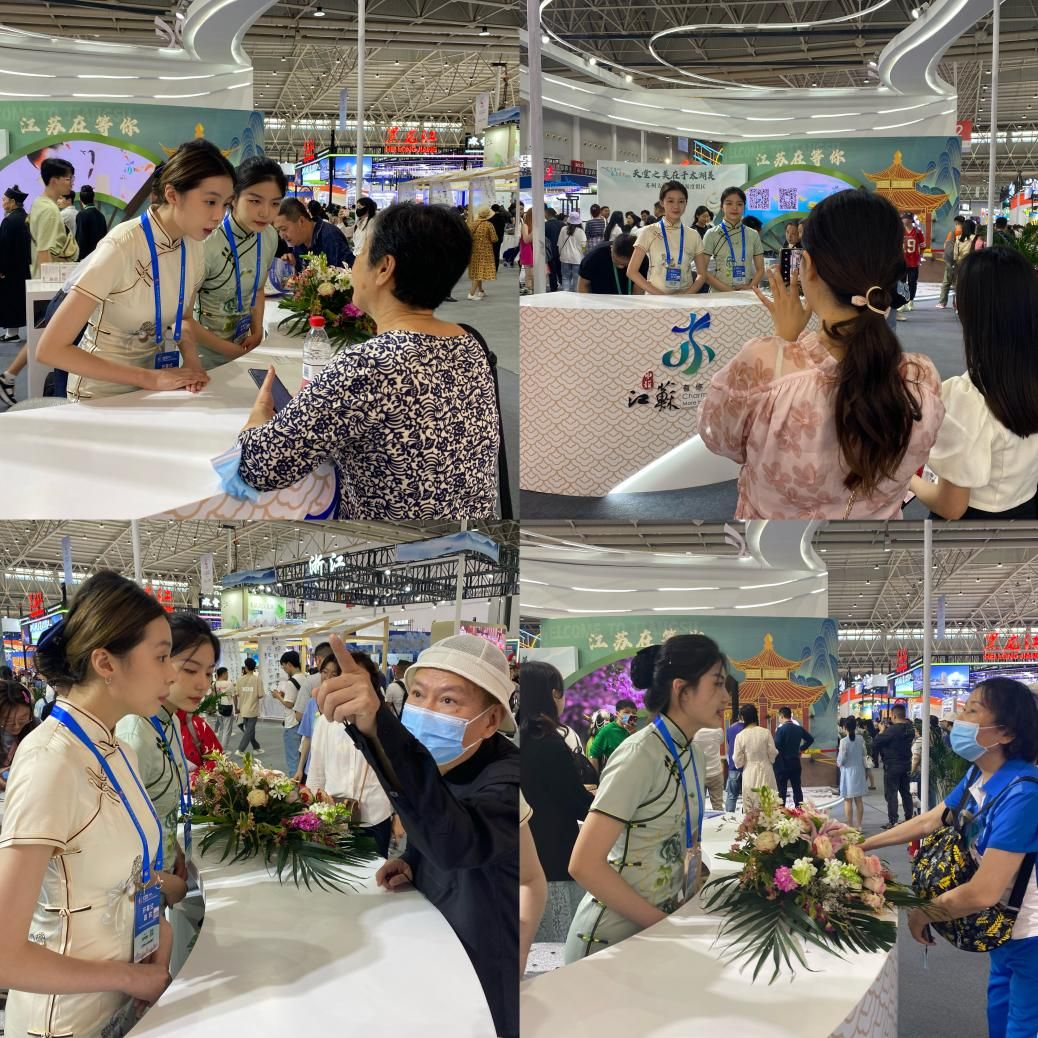此次江苏省参加文旅博览会以“水韵江苏·融合创新”为主题,重点展示了文旅融合、文化产业赋能乡村振兴等方面的江苏实践,为现场观众带来了极具江苏特色、类型丰富多样的文旅新业态、新模式、新场景。在博览会会场,张祎璠、亓慧丽两位同学以积极的态度、饱满的热情投入到自己的工作岗位之中,恪尽职守、乐于助人。在服务过程中两位同学仪态端庄、举止得体,遇事沉着冷静,待人彬彬有礼,展现了酒店管理学院学生的青春风采和精神风貌。
