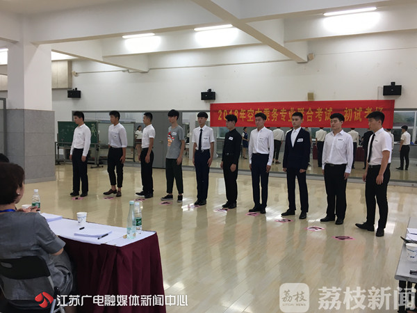 走进位于南京旅游职业学院考点的江苏高招空乘类专业联合测试的现场,可以看到考生们正以十人一组的方式,接受初试。除了要看身高体重这些基本条件,还要看五官形体、形象气质是不是符合要求。女生身高在162到175之间,男生身高在173到185之间。五官端正、肤色好、身材匀称,还不能有O形腿、明显疤痕和纹身,空乘专业的外形考查可谓条件严格。