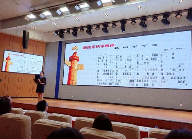 随后,基础部直属党支部党员龚诗昆、冯晓倩、蒯金娜分别讲述了“新四军铁军精神”、“周恩来精神”、“淮海战役精神”。