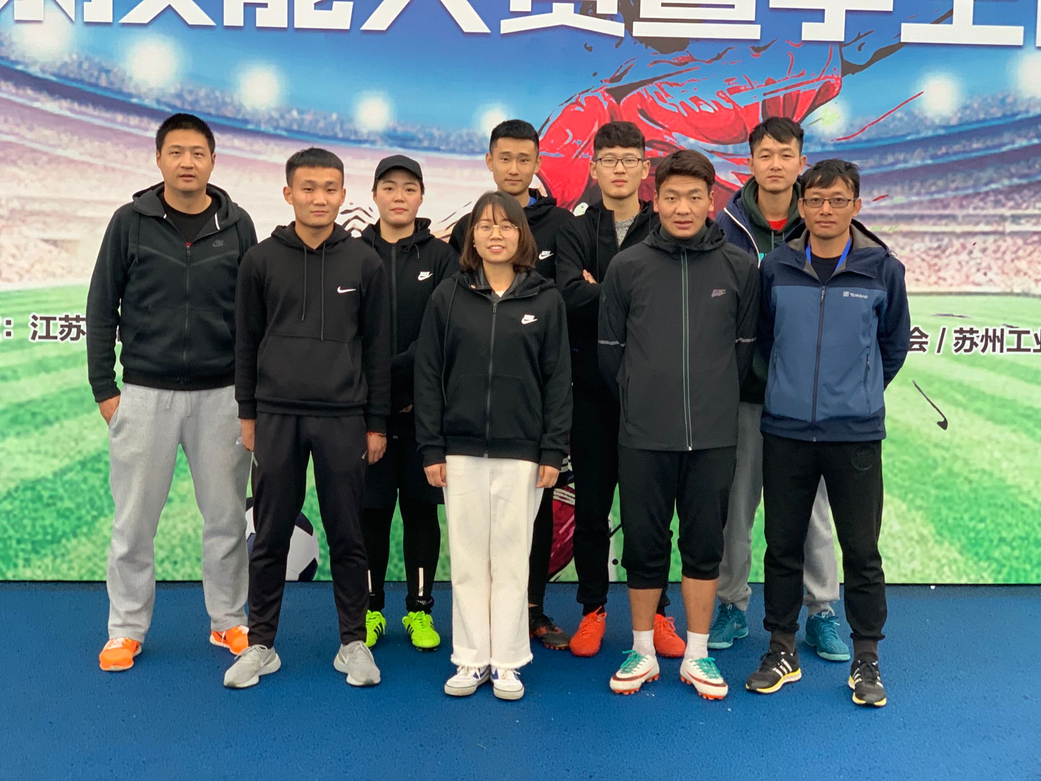 2018年11月14日—16日,江苏省第四届高职高专院校学生足球技能大赛在苏州工业职业技术学院举行,本届比赛是由江苏省教育厅主办,省高职高专院校体育教学指导委员会、省学生体协高校工作委员会、苏州工业职业技术学院承办。我校派出由体育部杨国光老师担任领队,石萌光、纪寿汉(外聘)为教练,刘若骞为工作人员,蒋海建、孙禹、旦增达瓦、邵泽龙、胡倩、王丹艺六位同学为运动员的代表队,参加团体赛及四个分项的比赛。