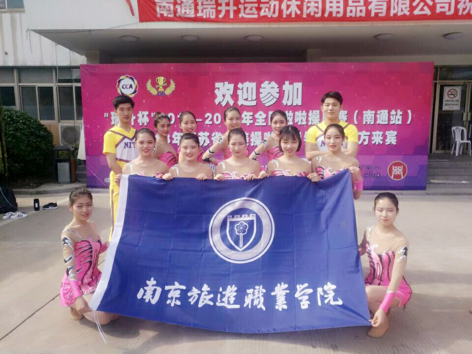2018年6月1-3日,2017-2018年全国啦啦操联赛(南通站)暨2018年江苏省健美操啦啦操锦标赛在南通市体育馆完美落幕。此次国赛吸引了约1500名运动员与教练员参加。由我校体育部牵头,校健美操社团为班底,体育部教师倪洁、石萌光、徐海宁及人文艺术系教师戚薇组成的教练团队,对通过层层选拔出14名学生进行为期2个多月的高强度训练。