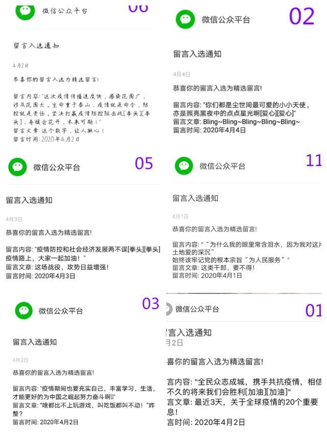 比赛规定自4月1日17:00起三天内,在新华网微信公众号发布的疫情相关微信进行微评论,被精选展示的留言可以参加本次作品评比,每人提交一件参赛作品。比赛三天中,大家持续关注、阅读、评论新华网微信疫情新闻。会员们的留言从坚定战胜疫情信心、恢复经济社会发展、赞美医护人员、充实学习生活、做好自我防护等方面表达了自己对于疫情的关切之情和完成自己本职任务的坚定意志。三天内,习研会人均被筛选展示超过2次。师生最终根据留言内容和人气(点赞数)共评选出了11项优秀作品。