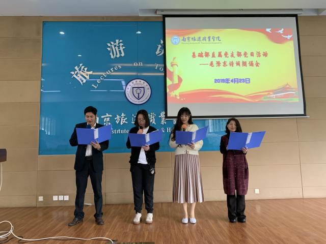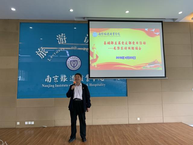 4月24日中午,基础部直属党支部在2号教学楼报告厅开展“重温红色经典·共忆峥嵘岁月--毛泽东诗词诵读”主题党日活动。全体党员教师和入党积极分子参加了本次诵读会。本次诵读会由支部副书记夏梦主持。
