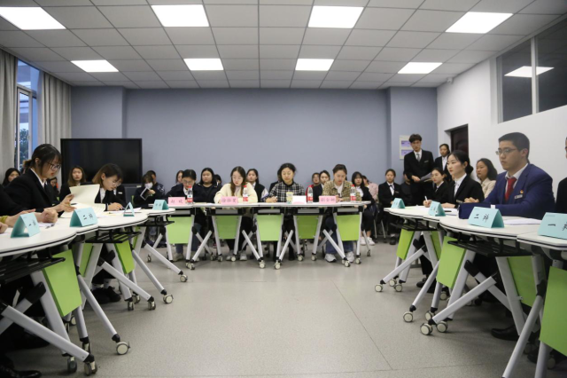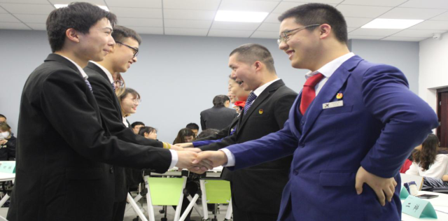赛后双方辩手,握手互相表示尊重。充分展现了南旅院青年学子的魅力所在,赛场上是对手,赛场下是朋友。无畏于输赢,更注重辩论的哲理与升华。