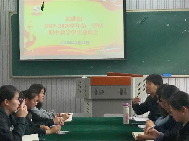 会上,夏梦首先介绍了本次会议的目的以及参会人员,鼓励学生们对基础部所承担的课程、教师教学及相关方面畅所欲言。