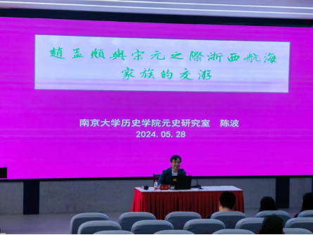 陈波副教授主要从事元代社会文化史及近世东北亚区域研究,现为中国海外交通史协会理事、江苏省书协会员。陈波在讲座中指出,元代海运体制的建立奠定了两浙地区作为全国交通、物流中心的地位,并催生了一大批以承运海漕为业并兼营海上贸易的新兴富民阶层——海运船户。在赵孟頫的艺术生涯中,昆山顾氏、长兴费氏等财力雄厚的航海家族给予其莫大支持,扮演了艺术赞助人的角色,使赵孟頫得以在宋元鼎革的大变局中得以维持一定的生活水准,安心艺术创作。通过分析赵孟頫与此种特有富民阶层的交游关系,对于理解元代的士商关系,乃至当时的整体文化氛围,有着积极的学术与实践意义。