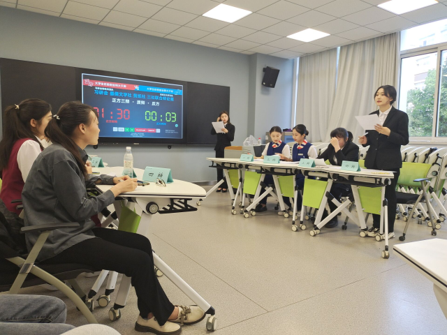 为了提高我校学生的综合素质,推动课堂教学与实践活动的融合发展。6月2日晚,由我校习研会主办的三社(习研会、墨儒文学社、剪纸社)联合辩论赛决赛在多媒体教室3105举行。决赛特邀基础部直属党支部副书记,思政部副主任夏梦老师,思政部赵欢老师、思政部教师及习研会指导教师龚诗昆老师和蒯金娜老师,作为评委出席。