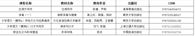 为加强对教学工作的指导,促进教材选用工作更加科学、可行,根据《南京旅游职业学院教材管理办法》,现将基础部2023-2024学年第一学期选用教材公示如下: