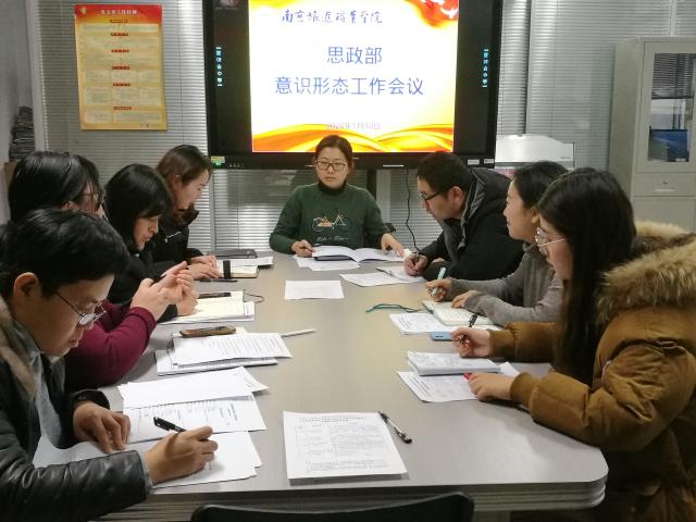 为深入贯彻落实习近平新时代中国特色社会主义思想和党的十九大精神,进一步加强我院思政课教师队伍建设,扎实推进思政课教学改革,1月10日,思政部在1107办公室召开2020年度意识形态工作专题会议,巩固意识形态教育主阵地,思政部全体专兼职教师参加会议。会议由思政部副主任夏梦主持。
