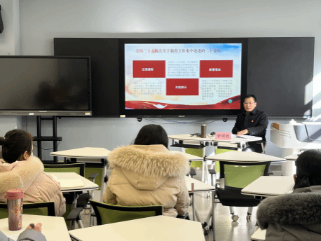 为深入学习贯彻党的二十大精神,12月14日下午在3105智慧教室,院党委委员、纪委书记金同胜为基础部全体党员教师上了一次党课。