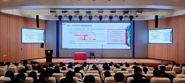 为学习贯彻党的二十大精神,开展党建引领思政工作,帮助我院大一新生树立正确的价值观,增强学生学习动力,11月18日晚,基础部直属党支部联合马克思主义学院在图书馆报告厅和腾讯会议举办讲座活动,安徽工业大学学生工作部副部长、心理咨询中心主任、马克思主义学院硕士生导师王军教授应邀为我校学生作了题为《大学学习与价值观》的专题讲座。400多名大一新生及知行社社员一起聆听了讲座,会议由基础部直属党支部党员教师尚全主持。