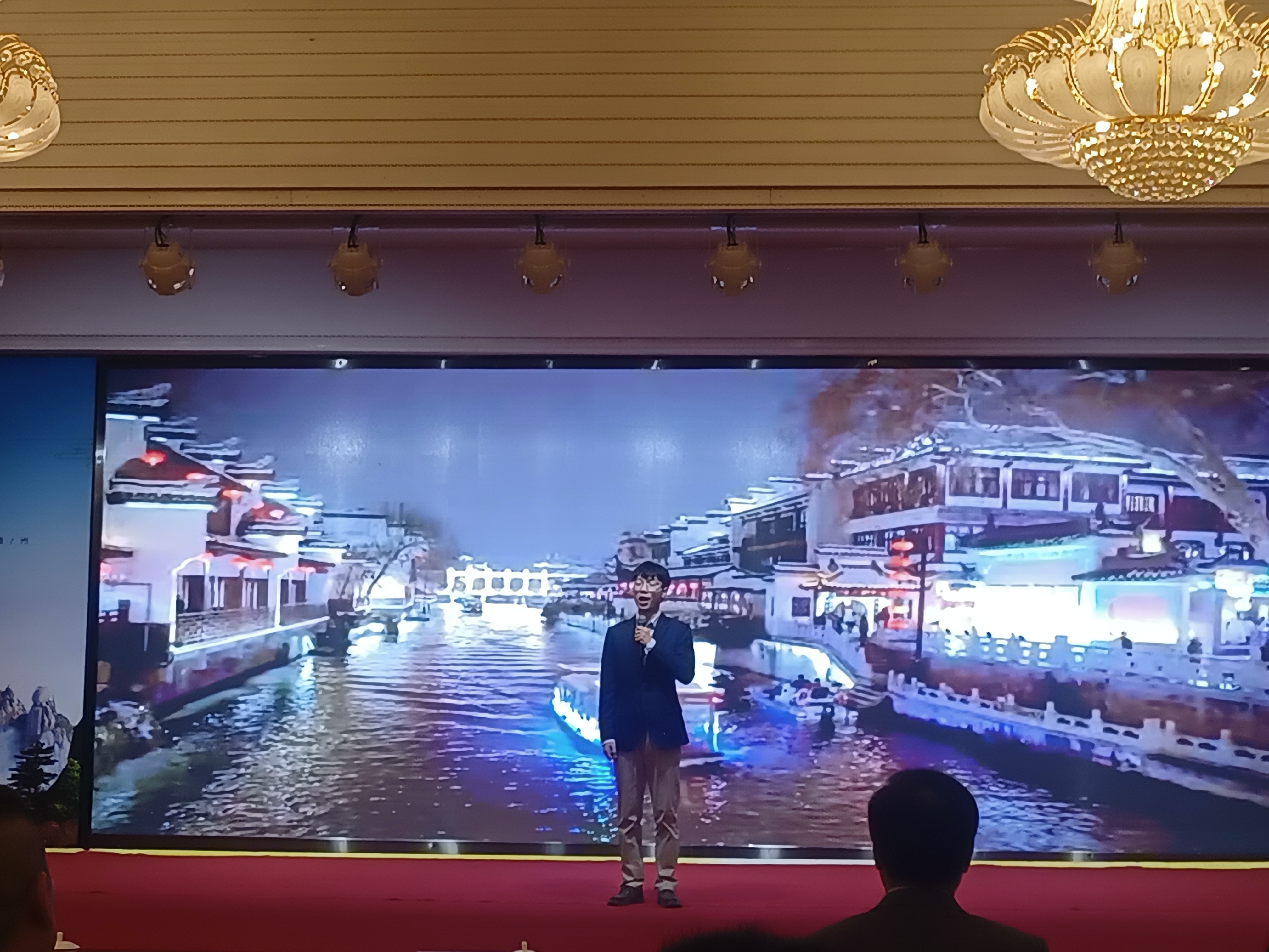 张骏作为颁奖嘉宾,为获得一等奖奖项的作品获得者进行颁奖,并见证了长三角联盟新成员单位签约授牌仪式和长三角旅游职教联盟与浙江省文旅·农林中职教育共富联盟共建协议。倪月犁指导学生邓佳豪作品《水韵江苏,桨声秦淮》在会上做了精彩讲解展示,获得与会单位代表一致好评。