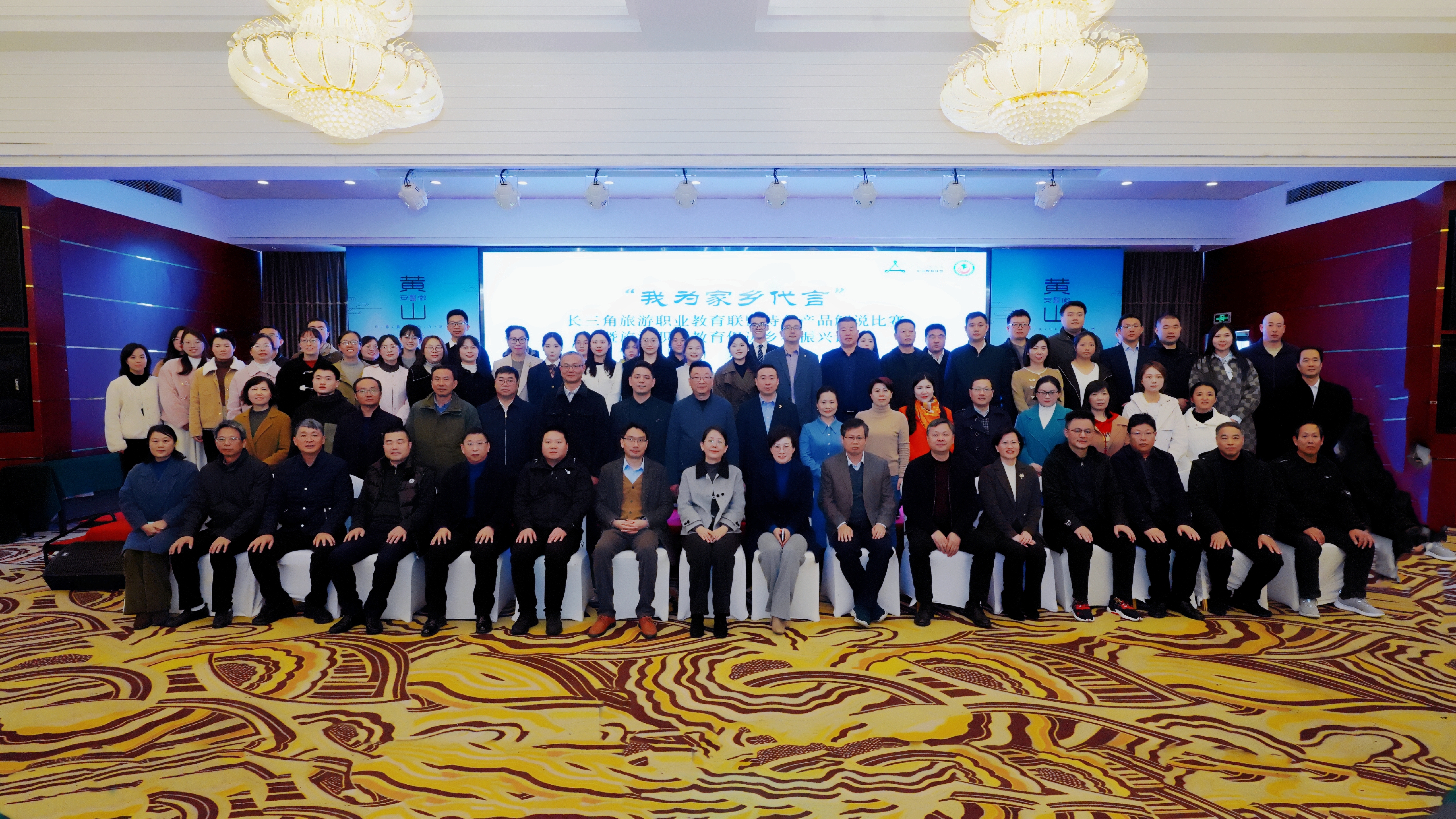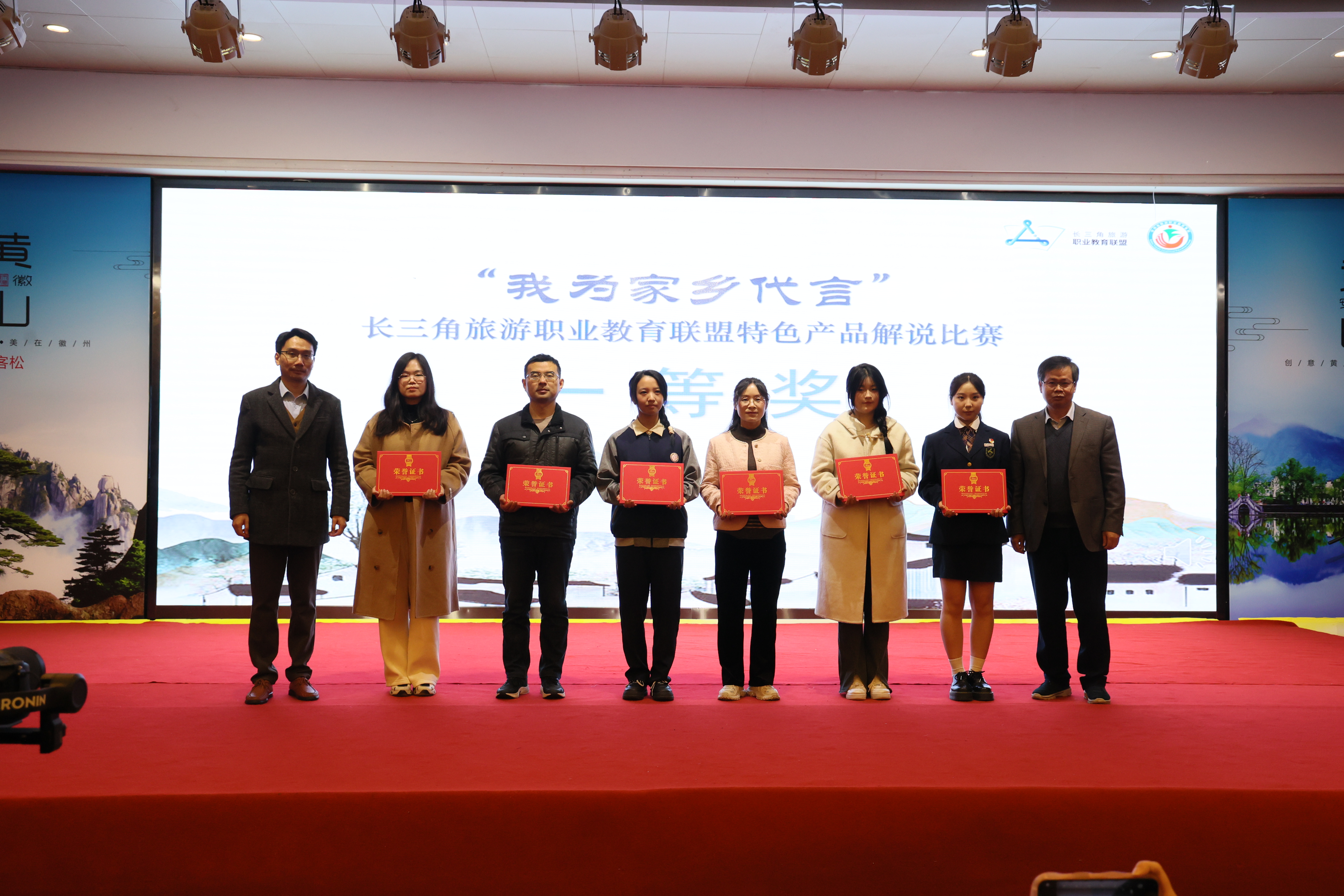 11月17日上午,长三角旅游职业教育联盟“我为家乡代言”特色产品解说比赛暨旅游职业教育促进乡村振兴论坛在黄山市黄山区举行。长三角旅游职业教育联盟成员参会代表及安徽省教育厅职成处处长饶庆眉、黄山区人民副区长刘先英、黄山市市委教育工委委员、教育局督学谢增华,黄山市教育局局长汪雷春,上海旅游高等专科学校副校长卓德保、浙江旅游职业学院合作发展处处长方敏、黄山旅游管理学校校长项文忠等参加会议。我院党委委员、副院长张骏、教务处处长孙爱民、酒店管理学院副教授纪文静、旅游管理学院副教授倪月犁、教务处教师臧传奇、旅游管理学院2021级学生邓佳豪应邀出席本次活动。