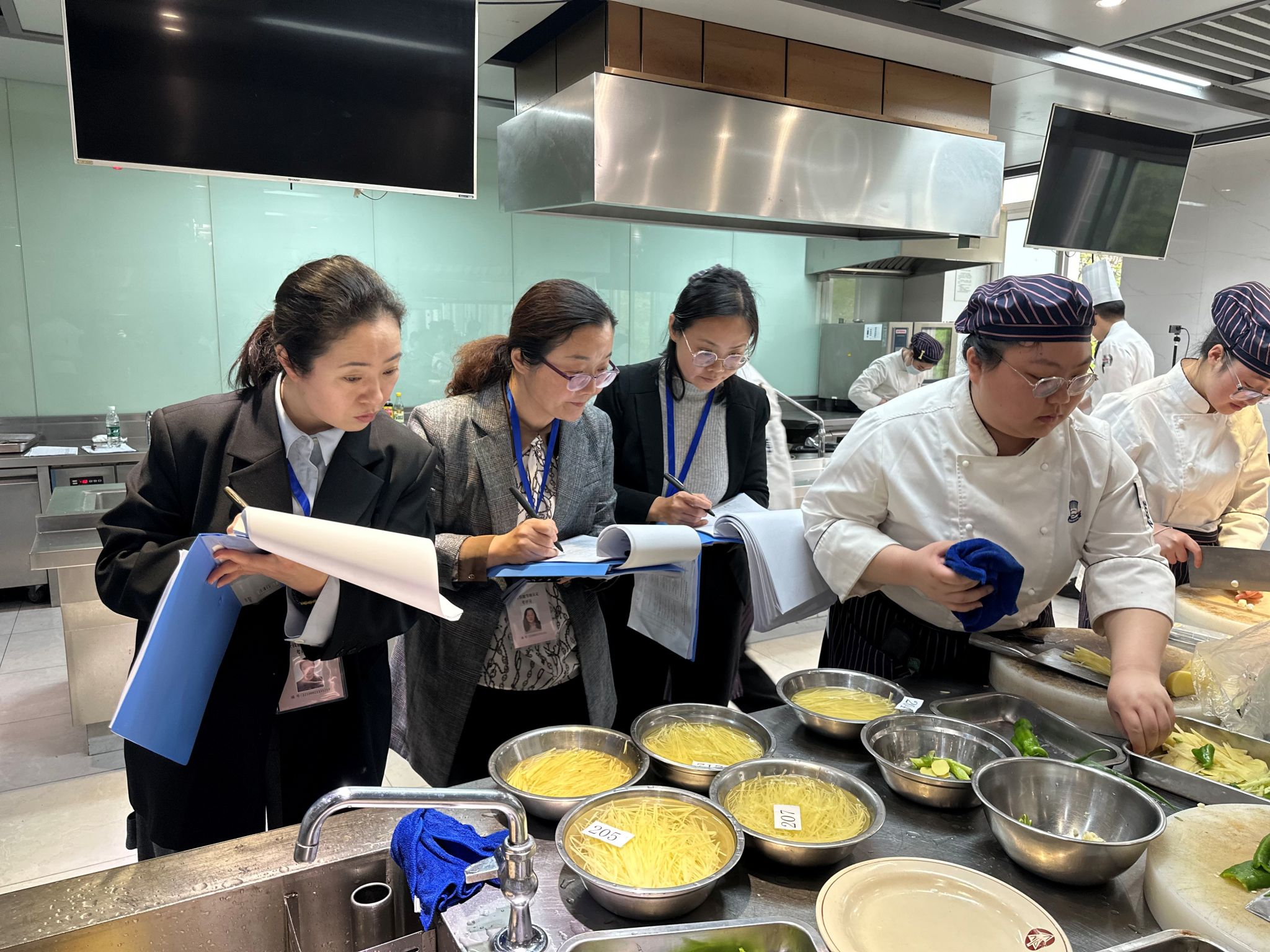 为保障考核的权威性与公正性,南京市江宁区人力资源和社会保障局高度重视此次考核工作。督导员何国斌、朱媛媛亲临现场,对考核过程进行严格监督。同时,我院技能等级认定内部督导员、纪委副书记周辉,烹饪与营养学院副院长王艳玲以及继续教育与培训管理处副处长颜坤英也一同巡视了各考场,对考核的组织与实施情况进行了全面了解与指导。