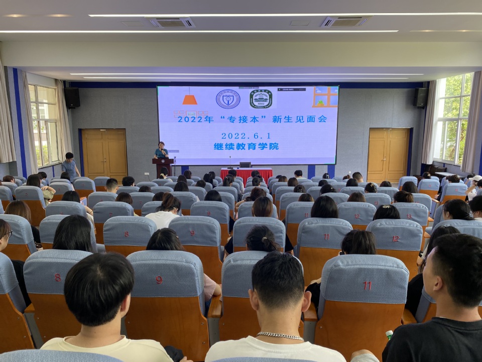 2022年6月1日,在2号教学楼报告厅成功举办2022级“专接本”新生见面会,会议由继续教育学院院长樊平主持并发言。