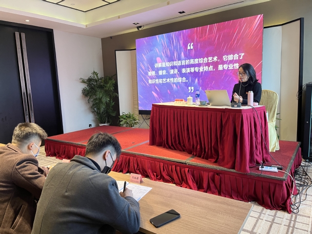 培训课程设置不仅包括我院党委副书记、副院长、教授黄斌主讲的《如何用好红色资源及红色文化》,旅游管理学院副教授葛益娟主讲的《红色旅游五好讲解员应具备的素质与修养》,中国作家协会会员、雨花英烈研究会理事、南京大屠杀史与国际和平研究院副研究员胡卓然主讲的《如何写好红色故事》,南京艺术学院电影电视学院播音与主持艺术系主任、教授宋奕主讲的《红色旅游讲解的方法和技巧》等理论课程;同时也特别安排了南京本地的优秀讲解员为学员开展现场教学,包括南京市雨花台烈士陵园、渡江胜利纪念馆、溧水红色李巷教育基地、南京长江大桥等红色教育基地。培训班还采用了小组研讨、经验分享等多种培训教学模式,使学员在轻松、和谐的氛围中学习最前沿的红色旅游发展理念,开展最充分的红色旅游故事交流,进一步提高了作为一名五好讲解员的业务能力。