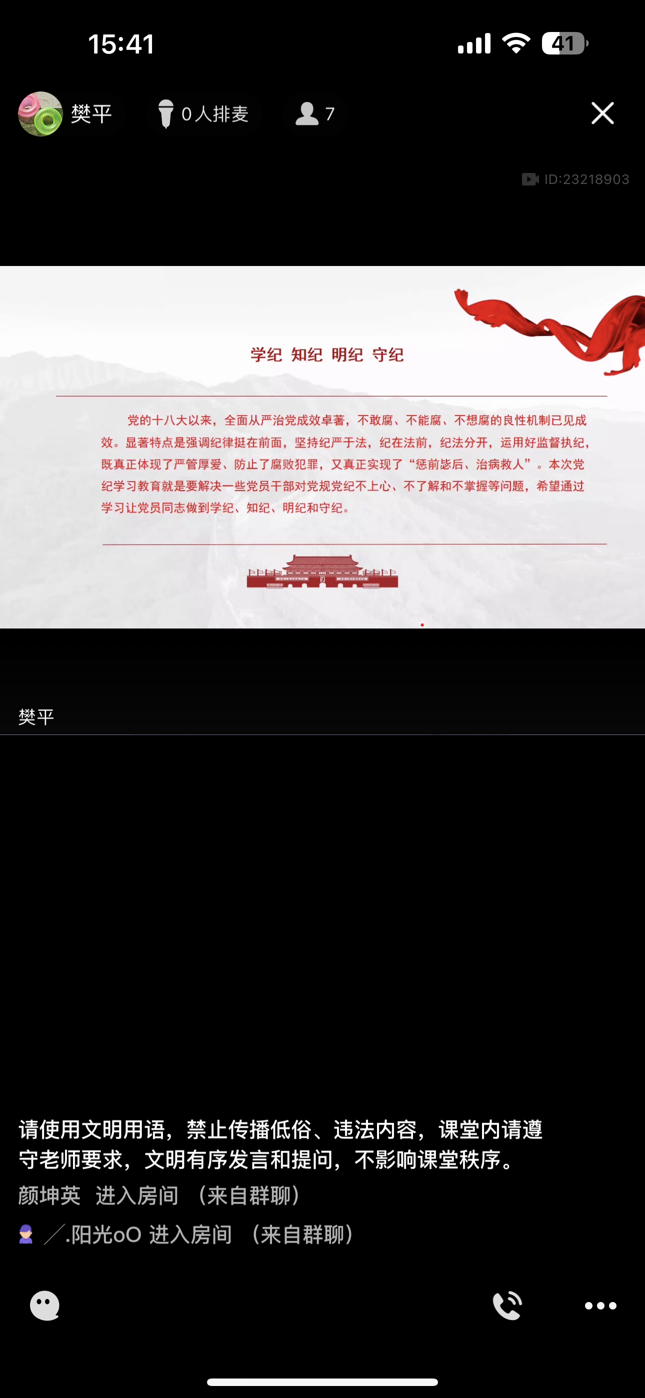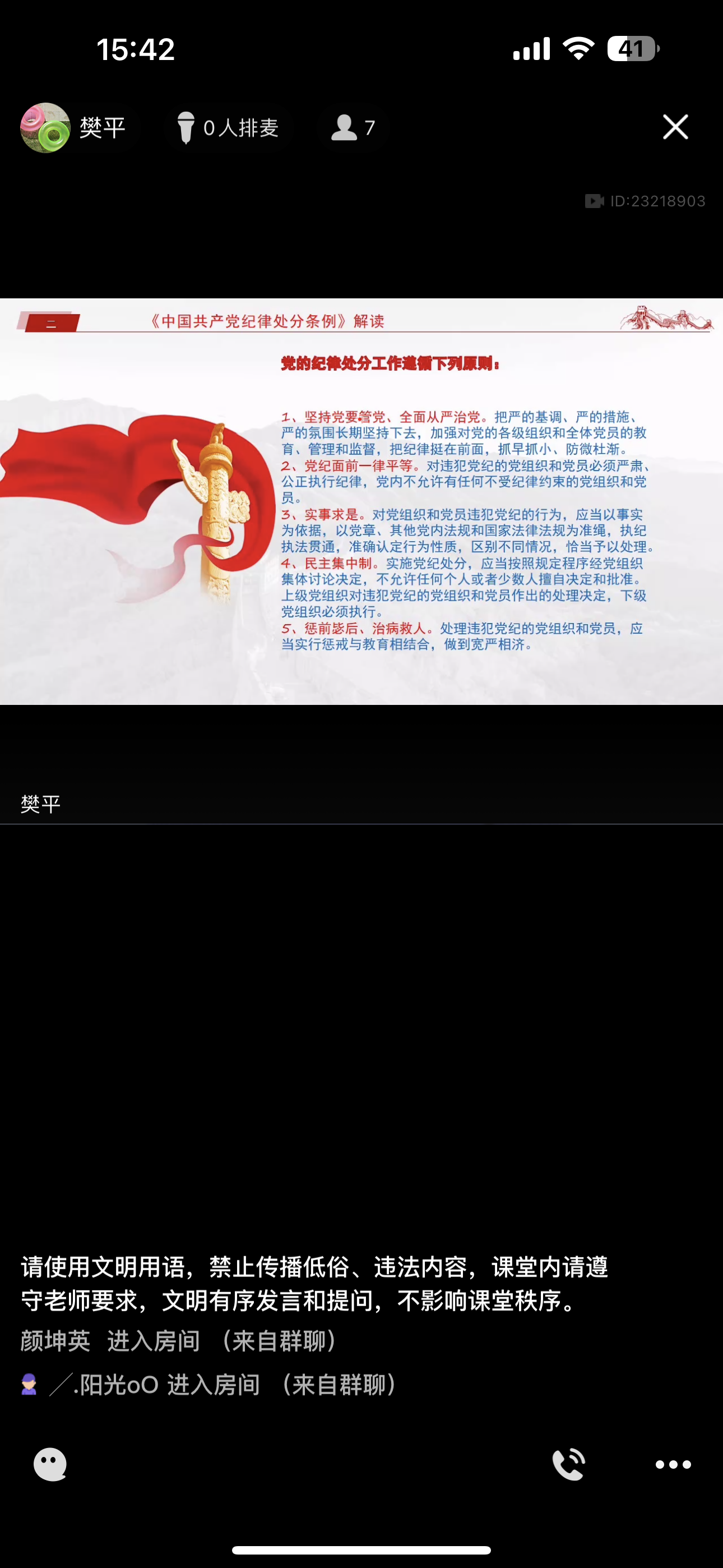 本次党课由继续教育学院党支部临时负责人樊平讲授,紧密结合当前党风廉政建设和反腐败斗争的形势任务,解决一些党员干部对党规党纪不上心、不了解、不掌握等问题。樊平院长通过线上视频会议的形式,用精心准备的课件带领全体学员深入学习《中国共产党纪律处分条例》,让党员同志真正做到学纪、知纪、明纪、守纪,进一步推动全面从严治党向纵深发展。