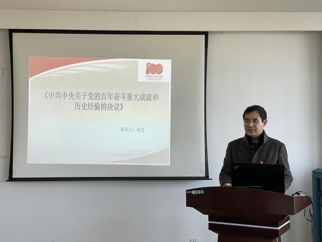 2月23日下午,行政第六联合党支部召开政治理论专题学习会,集中学习《中共中央关于党的百年奋斗重大成就和历史经验的决议》,学校党委副书记、院长叶凌波参加会议,会议由支部书记颜忠主持。