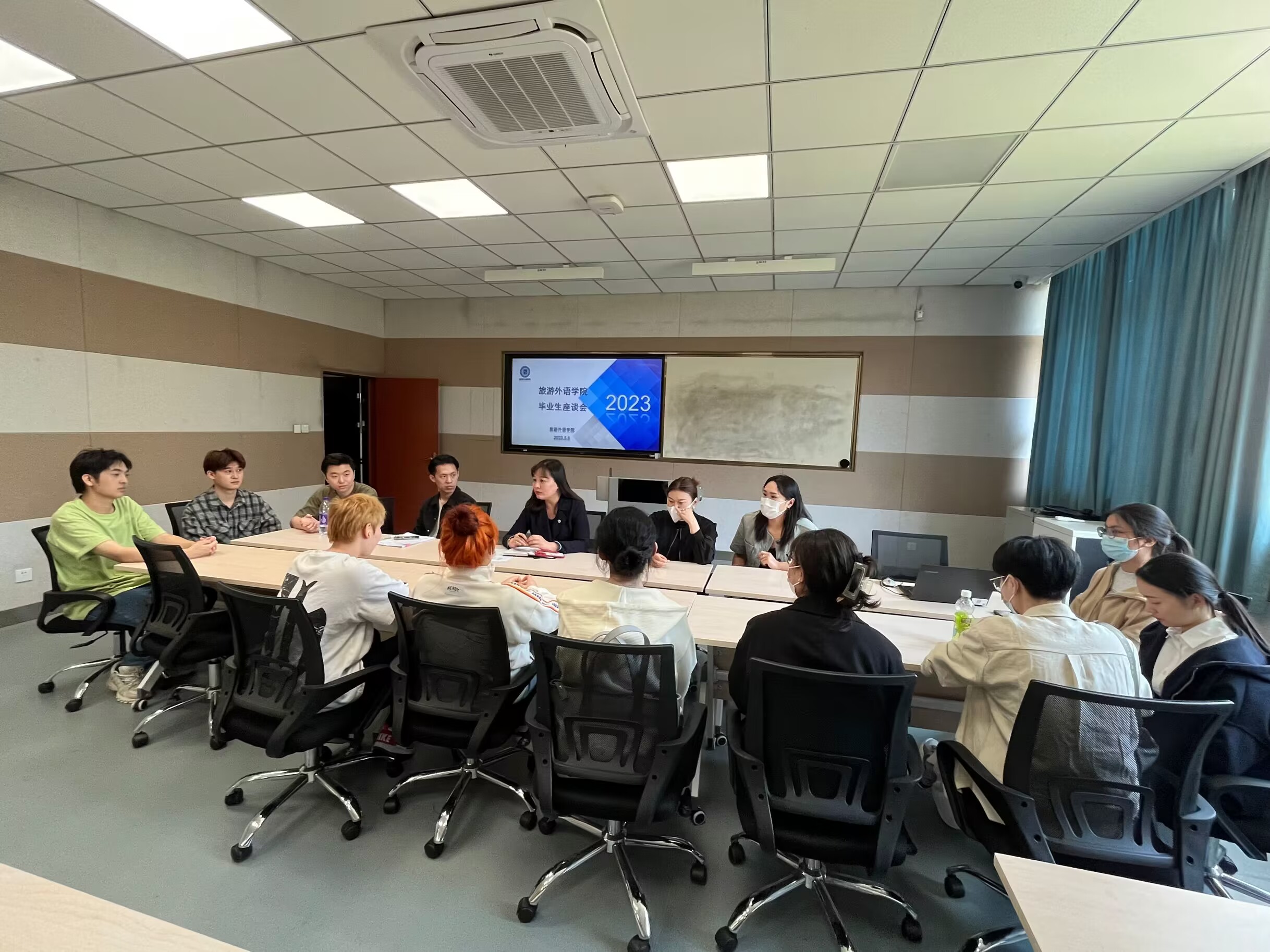 习近平总书记曾寄语广大青年:未来属于青年,希望寄予青年。当代中国青年生逢其时,施展才干的舞台无比广阔,实现梦想的前景无比光明。正值2023届学生毕业季,为深入了解毕业生情况,鼓励毕业生对学院发展、教育和服务建设提出意见和建议,旅游外语学院于5月9日在2105教师发展中心开展毕业生座谈会,会议由学院副院长姚瑶主持,毕业生代表参与了会议。