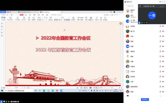 4月13日下午16:00,旅游外语学院通过腾讯会议平台召开线上会议,集中学习2022年全国、全省教育工作会议精神。本次学习由马一骞老师领学,全体教师参加。