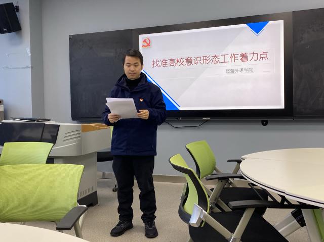 为进一步加强学院意识形态工作和宣传阵地建设,加强意识形态教育,提升教师政治素养,确保牢牢把握意识形态工作主动权和正确的政治方向,2022年1月5日下午,旅游外语学院全体教职工在3106智慧教室开展了意识形态工作集体学习会,本次学习会由党总支副书记王叶丁主持并领学。