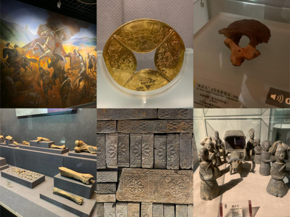 江宁博物馆由千秋江宁、风流东晋、裴家同书画馆及一个临时展厅组成,馆藏文物达3000余件,其中就包括著名的“南京猿人”头骨化石。它以浓重的笔墨全面集中展示江宁悠久的历史、独特的文化面貌、多样的人文景观。东晋历史文化博物馆与江宁博物馆同址建设,着重展示了江宁区近年在上坊镇地区发掘的东晋古墓文物近百件,全方位地为大家展示了东晋时代人民的生活风貌。就算是久居江宁的老师们,也惊叹于江宁这片地域蕴藏的悠久历史文化和博物馆多样化的展示,初来乍到的同学们若来看展,也必定会挪不动脚步吧。