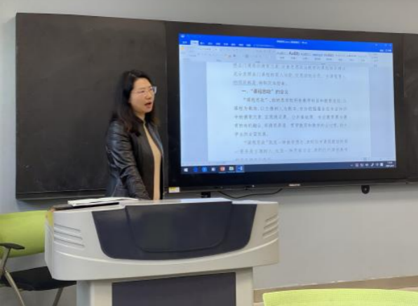 高玉垒老师分享 关键词:《英语泛读》、首批立项、优秀结项 高玉垒老师的《英语泛读》课程于2019年11月正式获批立项为校级课程思政示范课。经过一年期的建设2020年12月通过学校验收并顺利结项。高老师找到了阅读与思政的契合点,从《英语泛读》课程的教学知识点、教学内容和教学方式三个方向挖掘出包括马克思主义哲学观、社会主义核心价值观、优秀传统文化、法治教育、职业理想以及学会学习等主题的思政元素。通过阅读圈、对分课堂等教学方法,取得了良好的实施效果,建立了主题配套阅读资源,帮助学生成为会学习、有思想的当代大学生。高老师的分享得到了在场教师的肯定,引发了教师们的思考。